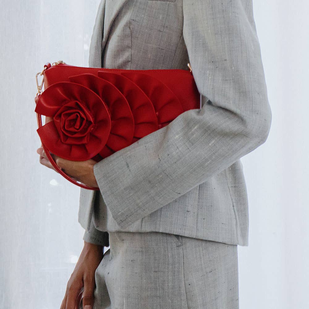 The Florence bag is the perfect combination of functionality and fashion. With its versatile design, this small bag easily converts from a shoulder bag to a crossbody to a clutch, providing effortless convenience. Adorned with a sophisticated flower embellishment.